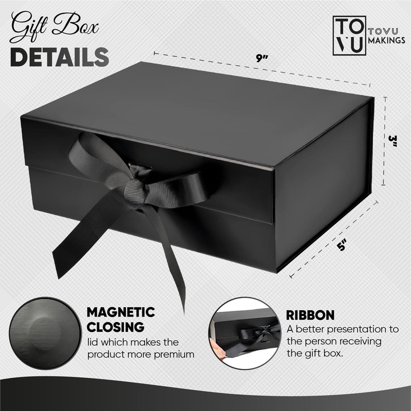 TOVU Makings | 9 x 5 x 3 in. black gift box | black gift boxes | gift boxes with lids | bridesmaid proposal box | black box | gift boxes for presents | large gift box | bridesmaid box | small box