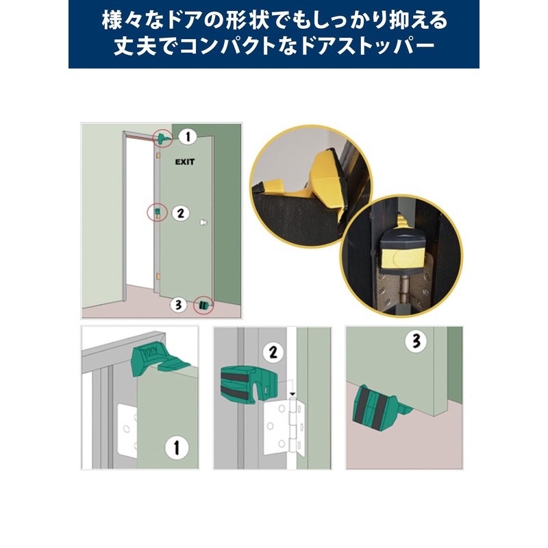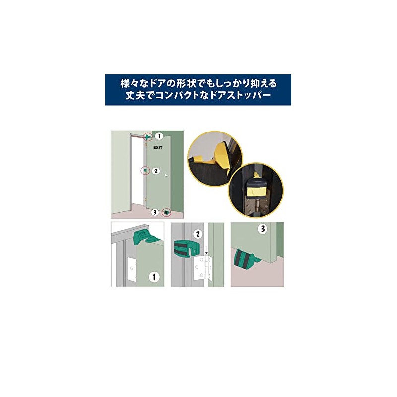 - [Product Features] Compact and durable multi-functional door stopper that supports doors of various shapes. You can also use it inside by tapping it into the hinge. Can be used on gate doors and exterior doors as well as interior doors. It is lightweight and convenient to carry to the site