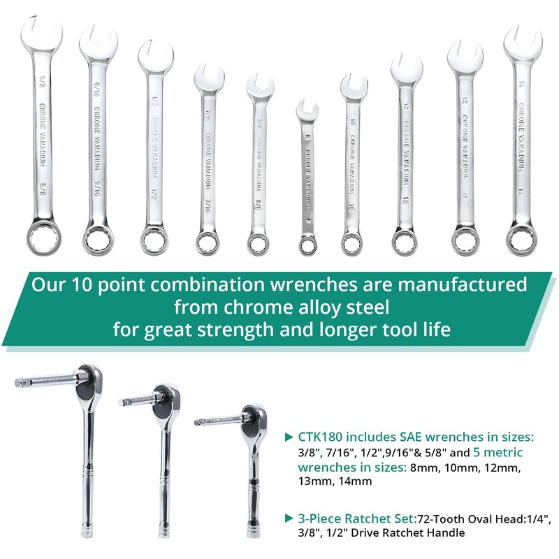 - 【High Quality Material 】This mechanic tool set forged from Cr-V Steel and finished in high-polish chrome,Polished surface for excellent work performance and provides plenty of strength, durability, anti-corrosion protection