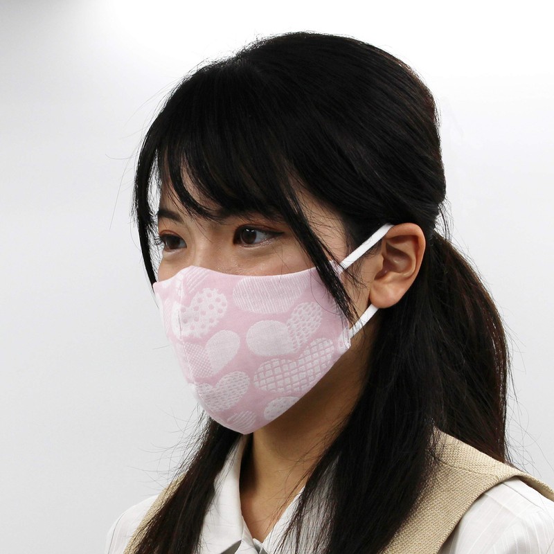 Towel Art Museum 70-9037108 Soft Gauze Mask, Antibacterial, Protective Filter, Prevents Cold, Droplets, Pollen, Reusable, Small, Hydro-Silver Titanium Treatment, Cute, Kippis, Heart, Scandinavian, Pink, Approx. 6.7 x 5.1 inches (17 x 13 cm)