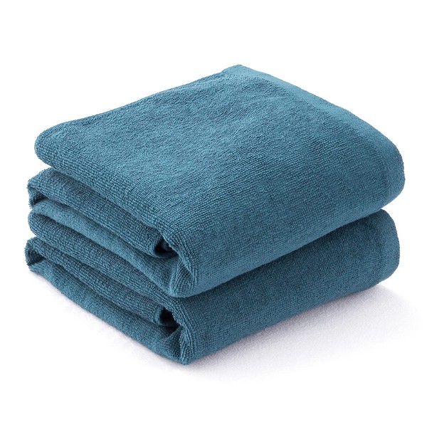 Towel Factory Lab Thin Quick Drying Bath Towel Set of 2 (Daily) Cerulean Blue, 100% Cotton, Absorbent, Petite Pla Towel, Approx. 23.6 x 47.2 inches (60 x 120 cm)
