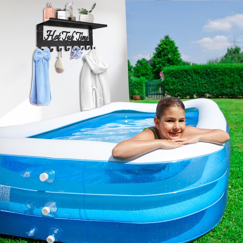 Towel Rack for Hot Tub with Shelf Bathroom Towel Holder 8 Hooks Towel Hanger Wall Mounted for Robes, Clothes, Towels - Hot Tub Accessories Outdoor