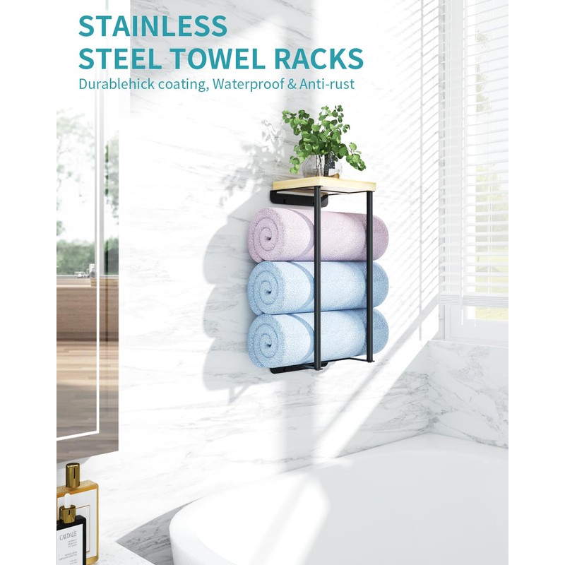 - Easy to Install: Towel racks for bathroom complete with mounting hardware and instructions, you can easily install the towel shelf for your bathroom next to the shower, over the toilet, etc.