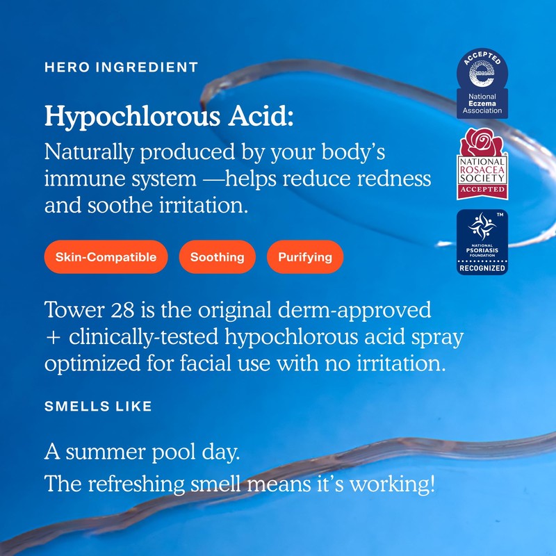 - How To Use: Add this Tower 28 facial spray to your skincare routine in the AM/PM after cleansing in place of toner; Use hypochlorous acid spray for face whenever, wherever over makeup, for blemishes, post-workout and much more