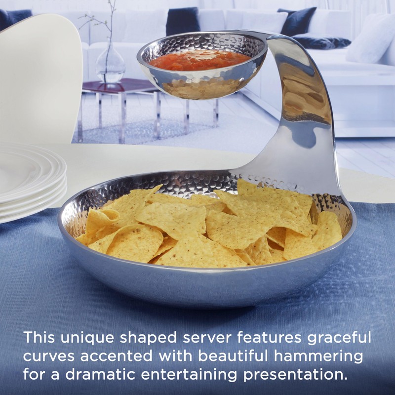 - This server features a tiered construction for serving chips and dip