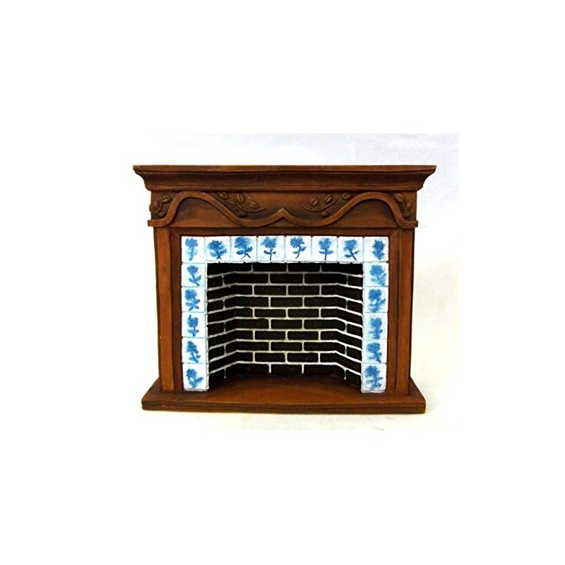 Town Square Miniatures Dolls House 1:12 Scale Miniature Furniture Resin Walnut Brick Delft Fireplace