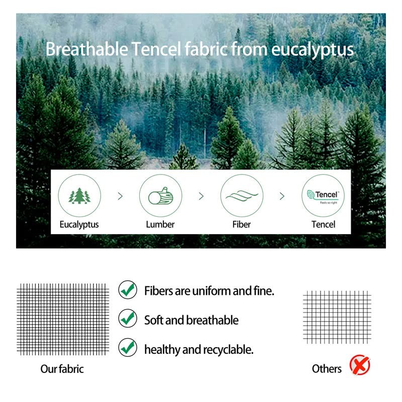 - High-end luxury, made from high-quality 100% organic eucalyptus tencel, one of the high-end fabrics, made from eucalyptus and free from harmful substances.