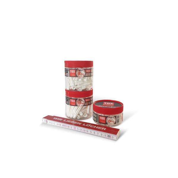 TOX All-Purpose Plug Deco 6/8/10 mm with 2 m Folding Rule, Four-Part Bundle, ...