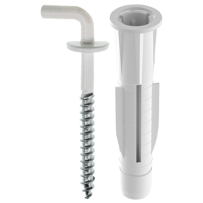 - Trika all-purpose dowel and hook screw Will-L: secure fixings in almost all building materials and white coated hook screw for beautiful look with Beffe for functional assurance of the dowel