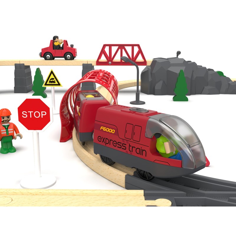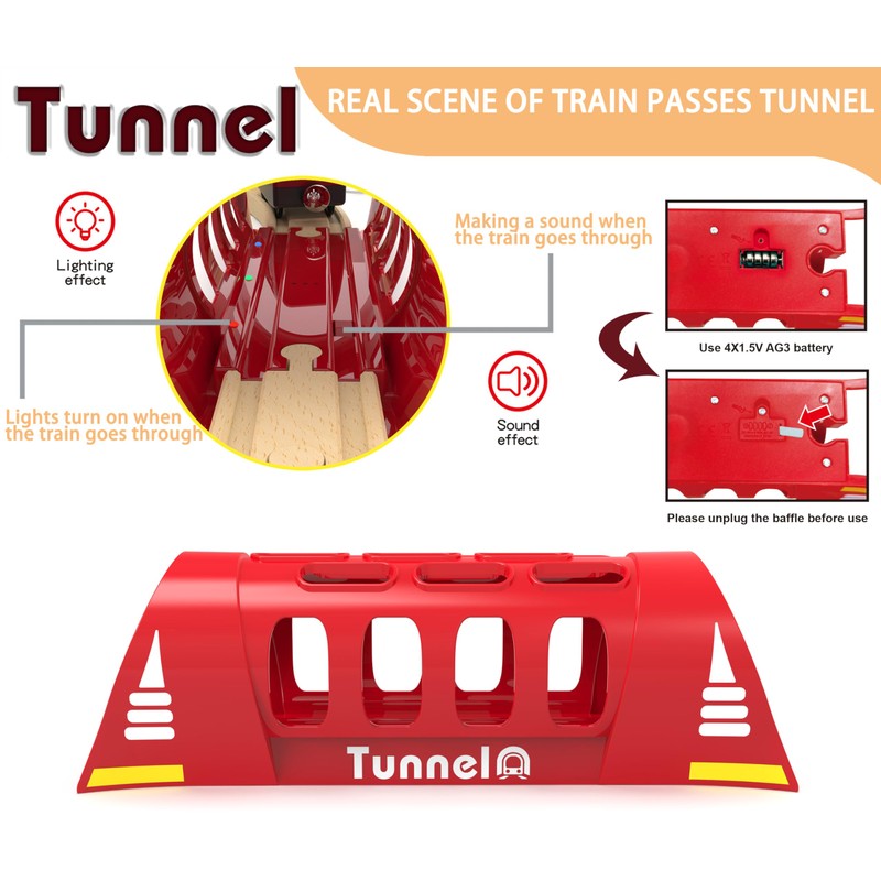 Toy Train Set Remote Control Locomotive Train, Motorized Train for wooden track, Electric Train and Tunnel with Sound & Lighting Effect, Magnetic Trains Compatible with Thomas, Brio, Chuggington