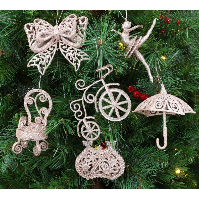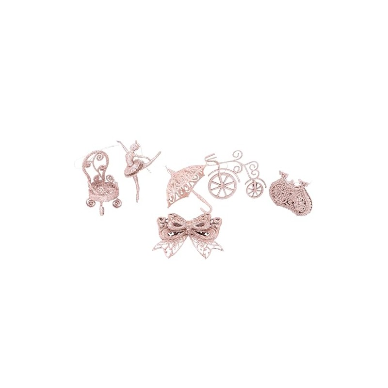 Toyland® Pack Of 6-11cm Glittery Decorative Tree Trims - 6 Assorted Designs - One Of Each Supplied (Rose Gold)