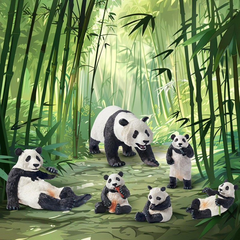 Toymany 6PCS Panda Figurines Toy Set, Realistic Plastic Jungle Animals Figures Family Set with Bamboo & Baby Pandas, Educational Toy Cake Toppers Christmas Birthday Gift for Kids