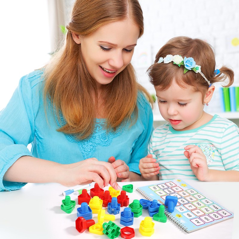 - Develop Skills: Our Screw Nuts Toys Need Children Screwing The Nuts Onto Corresponding Screws, Which Develop Their Hand Eye Coordination. We Have Carefully Designed An Educational Toy That Has Alphabet Learning, Learning With Colors And Shapes. Children Can Develop Their Sense Of Touch And Sight By Touching And Observing These Letters And Shapes.