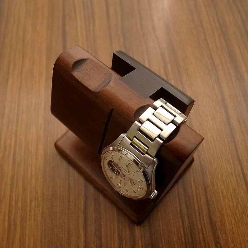 - Also usable as a clock, as the face of the watch is clearly visible when placed on the stand.Great for placing in your living room, bedroom, or on your office desk, as it takes up very little space. A simple and gentle design that brings out the texture and essence of wood.The contrast to its simplicity will also enhance the elegance of your watches.