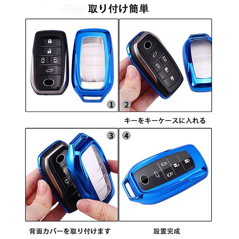 - (TPU Material) The Toyota key case is made of high quality TPU material that ensures light weight and durability. TPU material key case is oil resistant, water resistant, mildew resistant, and dust resistant. It protects your car key from corrosion and breakage and maintains its shape. Abrasion resistant, not easy to break, light and long lasting, protect your car key from scratches and abrasion