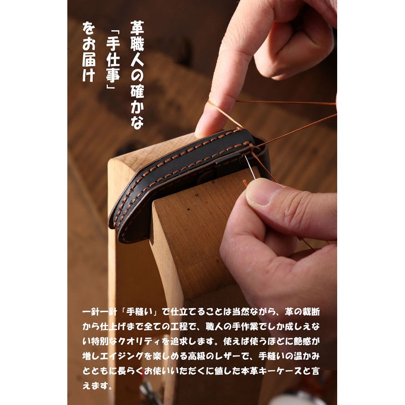 - (High Quality Materials) By adopting carefully selected crazy-horse leather, the texture, color and texture of the leather may vary slightly and the texture will change depending on the use and time. Double wave stitching makes the key case more sturdy and toughness. And every genuine leather key case is made of leather which gives you a good understanding of the time and power of polishing the edges by hand, making the surface more shiny and beautiful