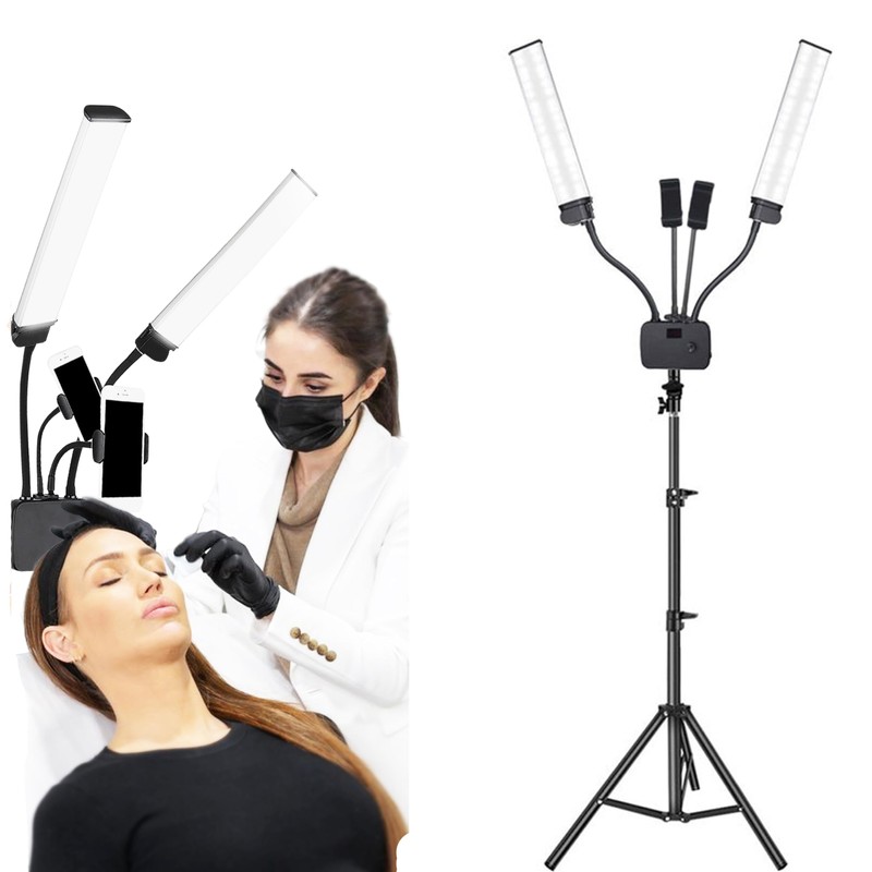Toyshi Adjustable Selfie Lash Light Flex Light Pro - Portable Dual LED Lamp with Tripod and Phone Holder Mount, Flexible 2-Point LED Lights for Tattoo artists, Eyelash Artists, Eyebrow