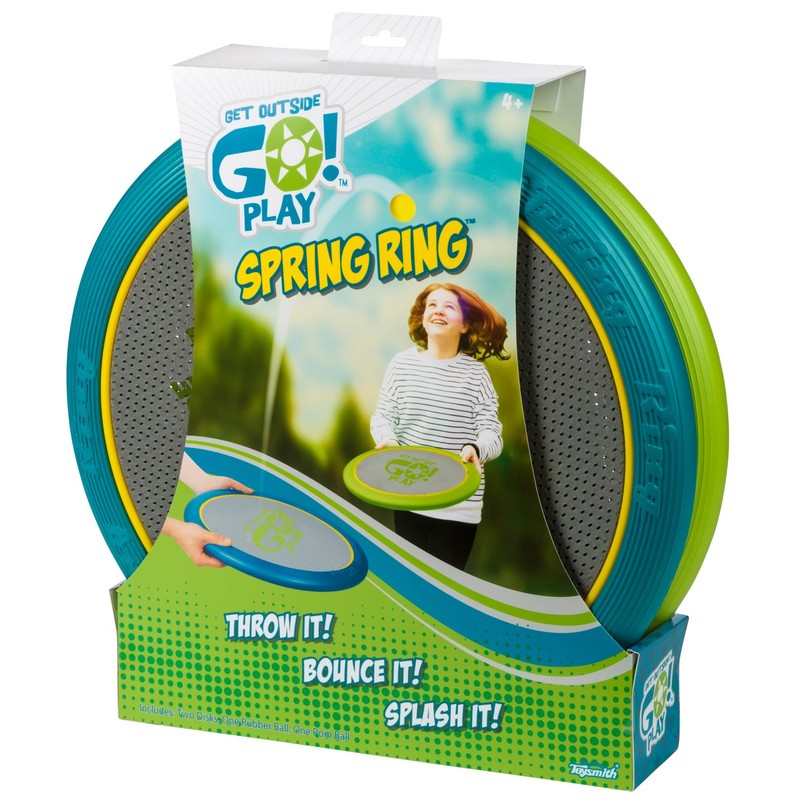 Enjoy your outside playtime with the Toysmith Spring Ring. Play a variety of games for hours with this catchy, throwing, bouncy, flingy, fun ring set. The large springy disks are great for use in a multitude of outdoor games. This set includes 2 spring ring disks, 1 rubber ball, and 1 splash ball to create a play setup you can take anywhere. Bring it to the beach, the park, or your own back yard for great bouncing fun. Made using safe and high quality materials, this product is designed to last. Recommended for ages 4 and up.