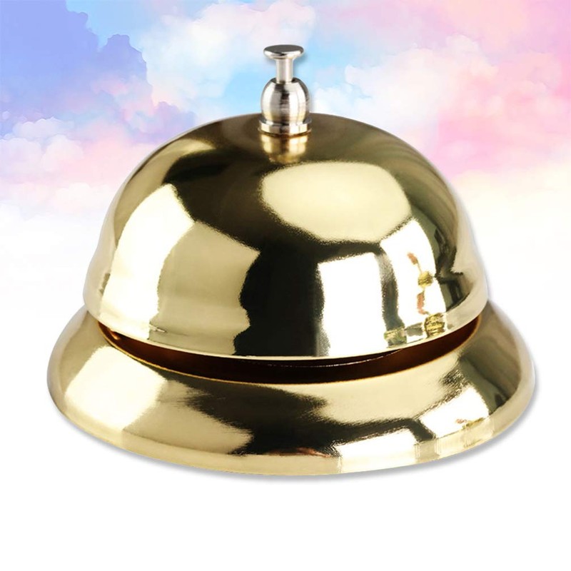 This item is a practical table bell made of high quality metal for durable use. Only by pressing the top button, the bell will ring clear and strong.