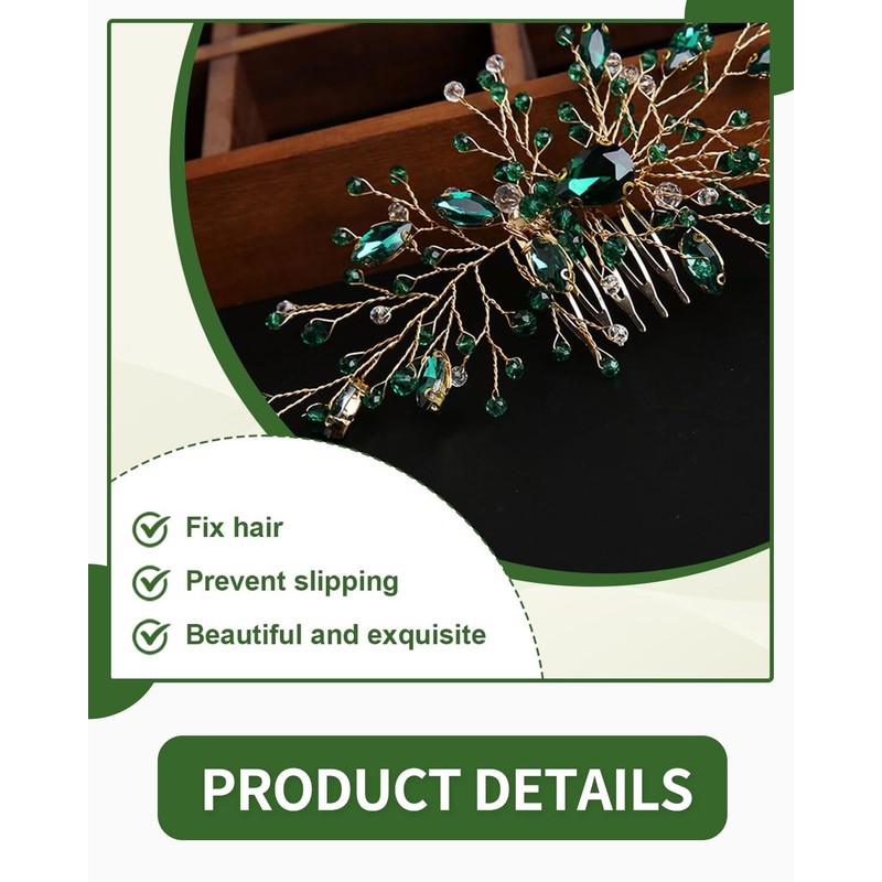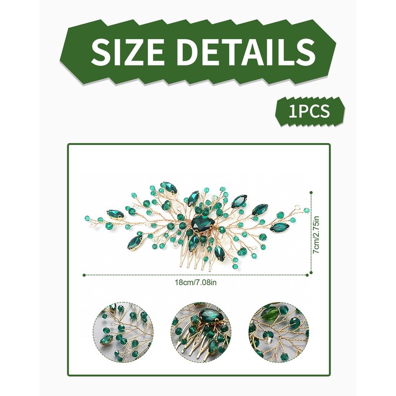 TOZBLEU Green Hair Jewellery, Glittering Crystal Hair Comb, Hair Accessories, Wedding Hair Comb, Green Crystal Hair Combs, Christmas Hair Accessories for Bride and Bridesmaids, Girls