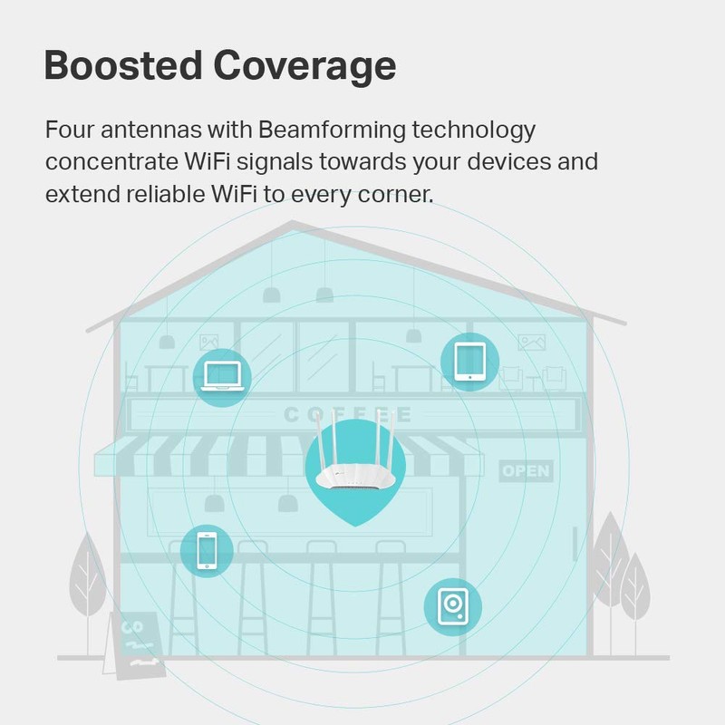 • 【Boosted Wi-Fi Coverage】Four external antennas equipped with Beamforming technology concentrate Wi-Fi signals towards your devices to extend reliable Wi-Fi to every corner of your home or office—even over long distances.