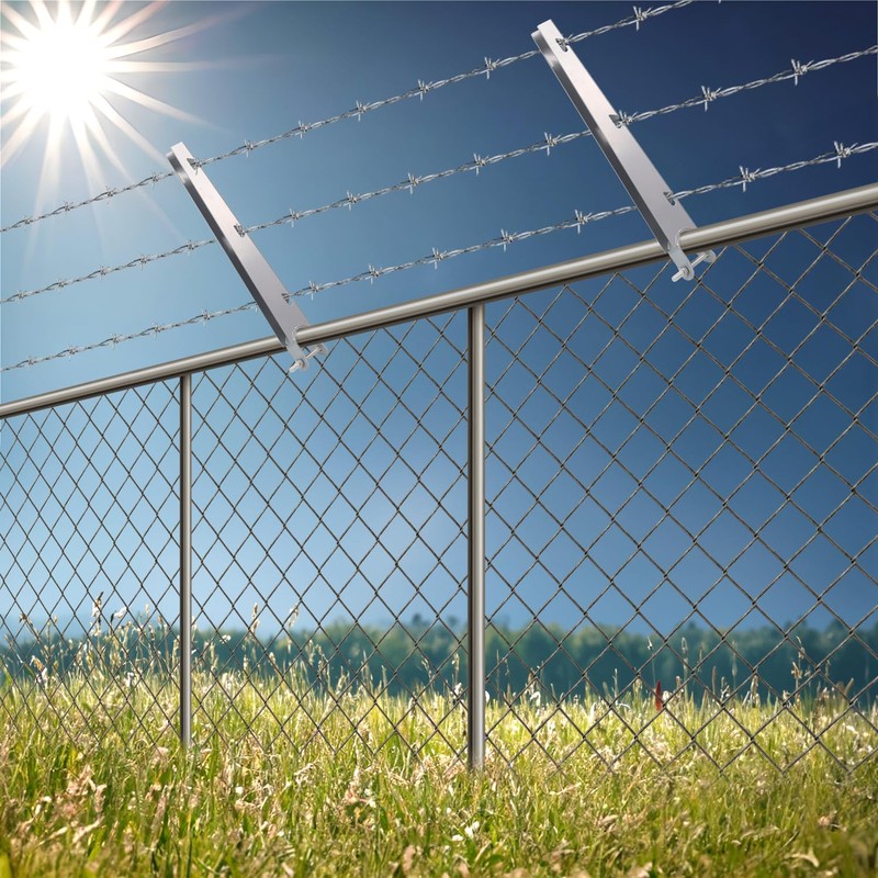 TPHUC 10 Pack Barbed Wire Extension Arms for 1-3/8"" Chain Link Fence, Cornered Barbed Wire Arms for Garden and Home, Silver