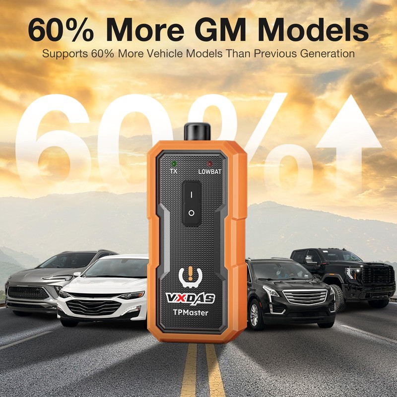 - Mayor compatibilidad: TPMaster soporta un 60% más de modelos de vehículos GM en comparación con el EL-50448. Esta compatibilidad mejorada garantiza que más usuarios puedan beneficiarse de las funciones avanzadas y la fiabilidad de TPMaster, lo que lo convierte en una herramienta versátil para una amplia gama de vehículos GM.