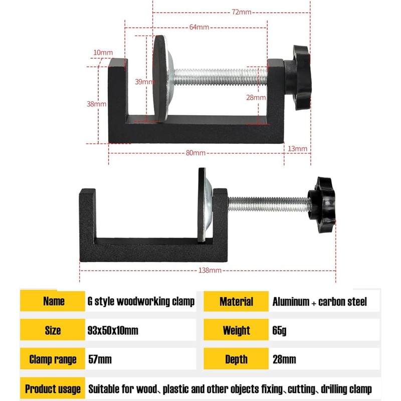 • High Quality: The G clamp is precision cast from high-quality Aluminum and carbon steel,provides reliability,rust-proof,wear resistance and corrosion resistance.The heavy duty C clamps is 0.39 inches thick,every small c clamps each to 2.29oz, very strong and not easy to break, will not deform even under high pressure.