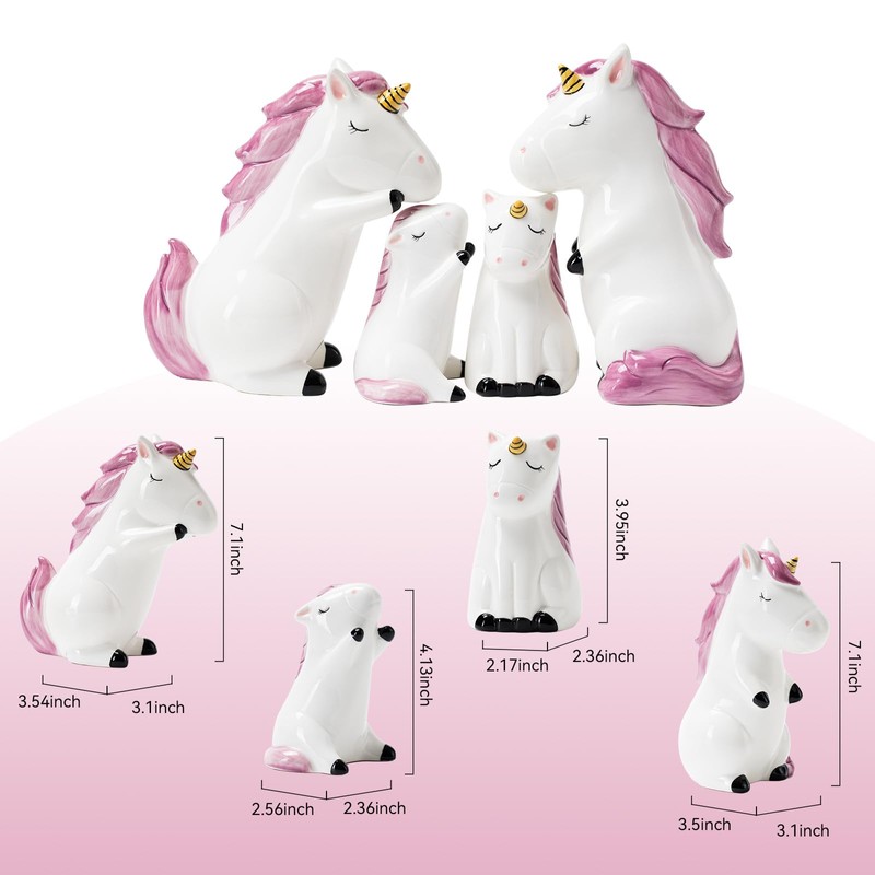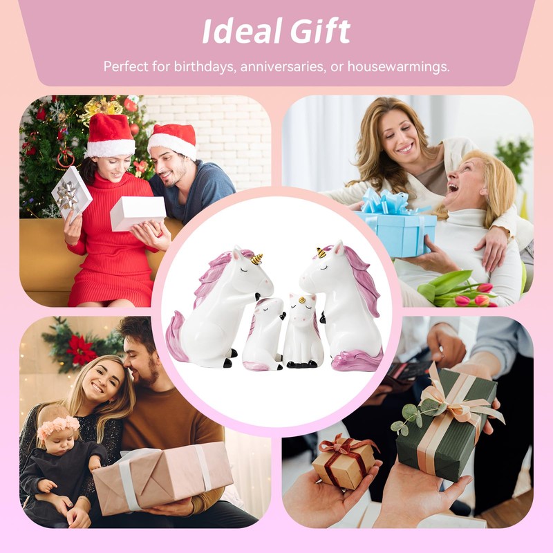 TQUPT 4-Piece Unicorn Statue Set - Unicorn Statues Figurines for Home&Office Decor, Ceramic Combination Statue (Colourful)