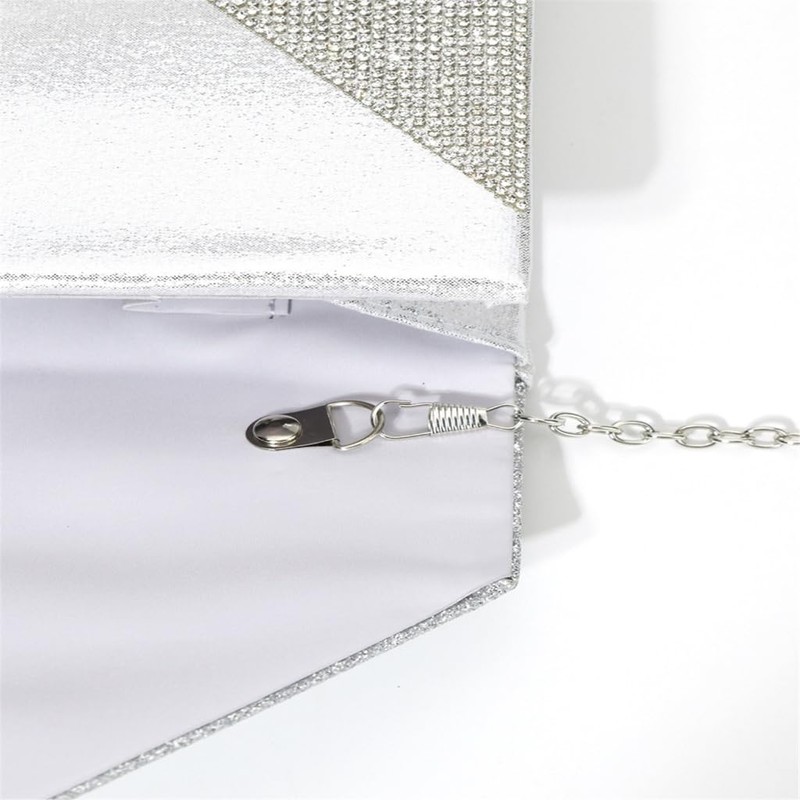 TQUXNGA Elegante Abendtasche mit Diamant-Motiv, mit Magnetverschluss, für Partys und formelle Anlässe, silber