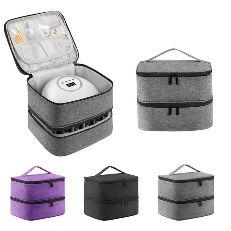 TQUXNGA Stilvolle Tasche für Nagellack und Lampe, doppellagig, stabiler Griff, grau