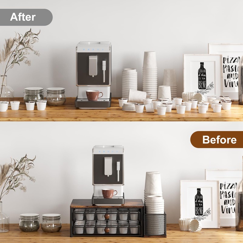 - 60 Capacity: Each pull out drawer can hold up to 30 regular coffee pods, you can store a total of 60 coffee pods with 2 drawers, accommodating various flavors of pods to meet your different taste preferences