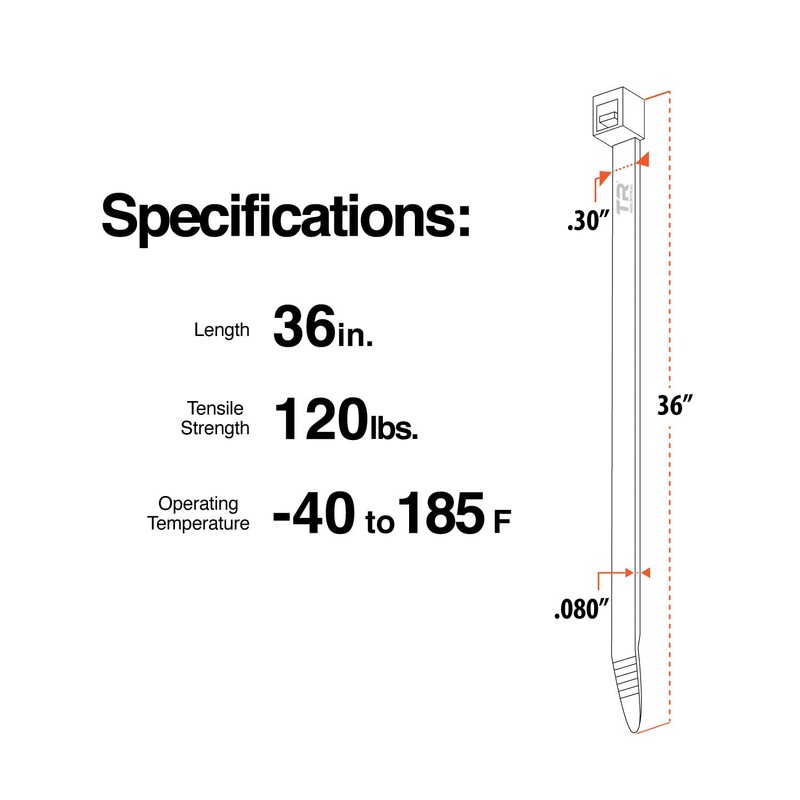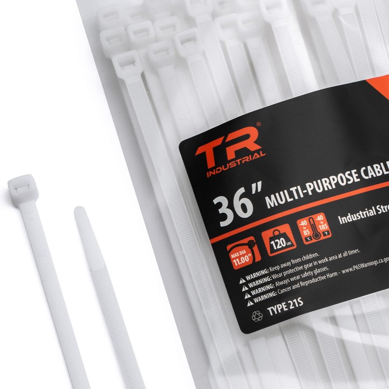 TR Industrial Multi-Purpose UV Resistant Natural Cable Ties, 36 inches, 50 Pack