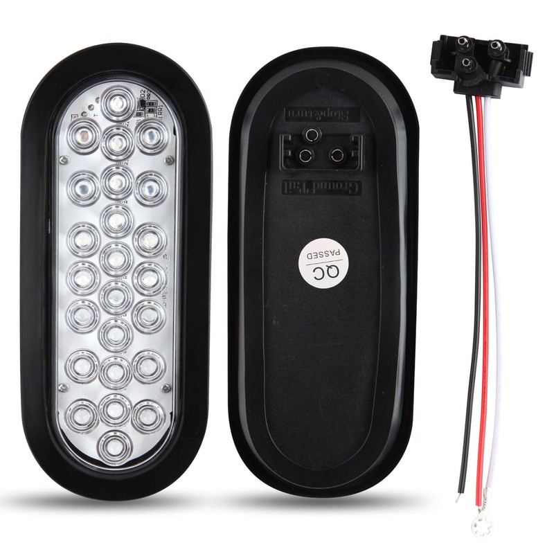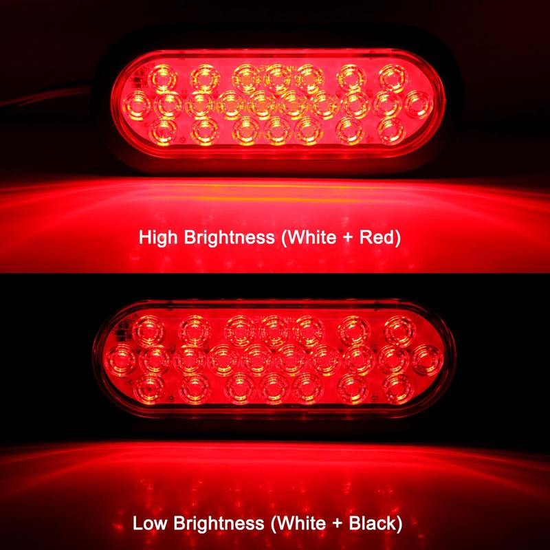 - 【Easy Installation】White Wire: Ground; Red Wire: high brightness for stop/turn /brake lights; Black Wire: low brightness for tail/running lights; The 6 inch oval led tail lights comes with grommets for surface mounting and a 3-prong watertight plug with wires has been added. You just need to surface mount the grommets & light setup, and then connect the 3 wires to the corresponding wires on vehicles;
