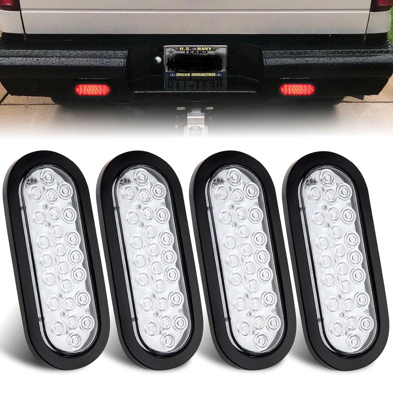 - 【This kit includes】:you will totally receive 4 piece clear lens red 6"inch oval LED stop turn tail lights, equipped with 4pcs rubber grommets and 4pcs 3-prong wire pigtails.IP67 waterproof takes on any rough weather for rock solid operation;