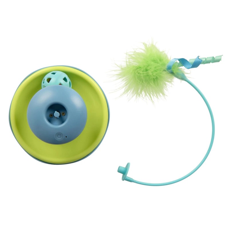- 2-IN-1 INTERACTIVE TOY: Combines a spinning feather wand and rolling track ball to engage cats for hours.