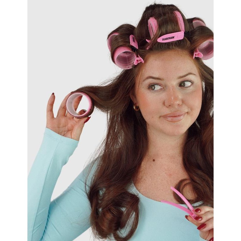 Trademark Beauty Velcro Rollers Set - Long Hair, 18 Hair Rollers with Matching Clips in Fun Pink Color, Bombshell Blowout