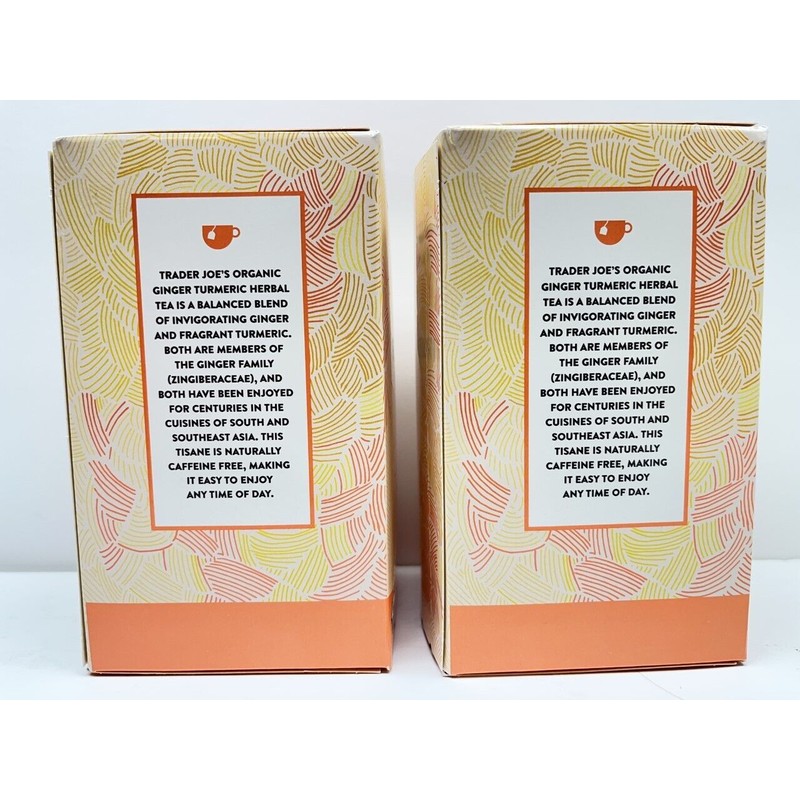 2- BoxTrader Joe's ORGANIC GINGER TURMERIC HERBAL TEA Tumeric Caffeine Free.