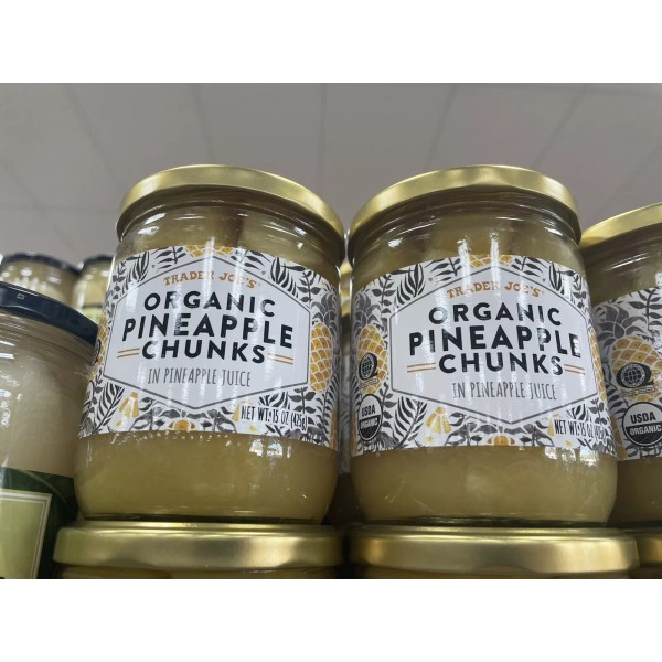 2 Pack Trader Joe’s Organic Pineapple Chunks In Pineapple Juice 15 oz Each Jar 🍍🍍.
