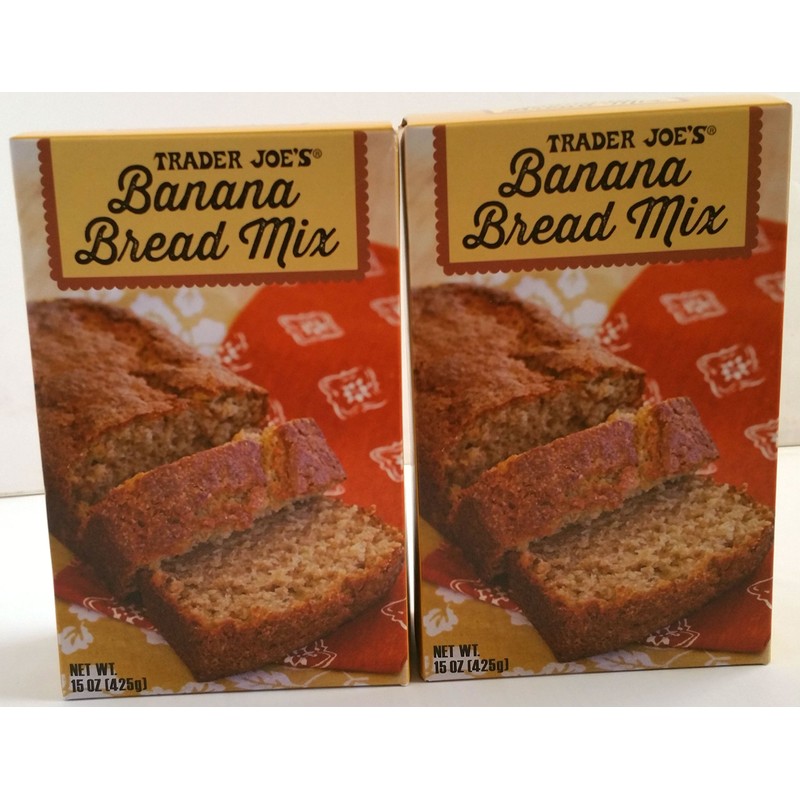 Trader Joe's Banana Bread Mix brings you all the goodness of homemade banana bread. ... in an easy to prepare mix. ... Feel free to add your own extras, like a ripe banana, coconut, berries, walnuts or peanut butter frosting ... the "Trader Joe's - Banana Bread Mix" comes in a box of 15 Oz (425g) Net Weight - and with this listing being for "TWO (2) Boxes" ...