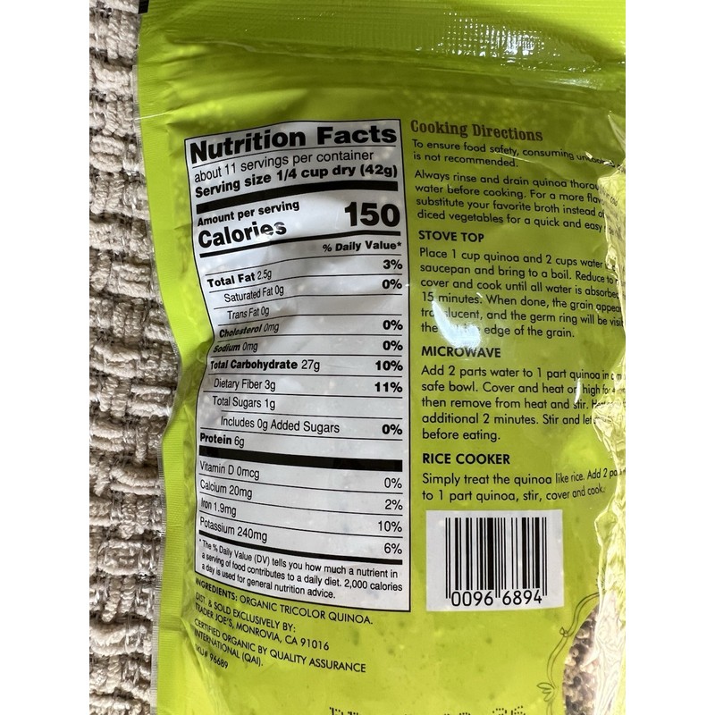 Enjoy a healthy, protein-rich grain with Trader Joe’s Organic Tricolor Quinoa. This gluten-free blend includes white, red, and black quinoa, perfect as a side dish, salad base, or main course ingredient.