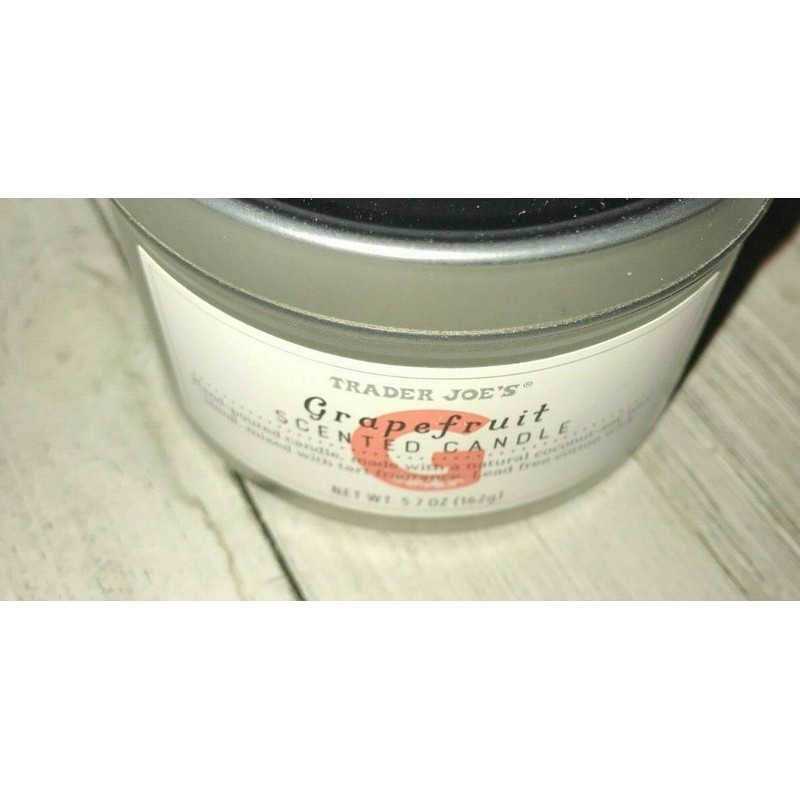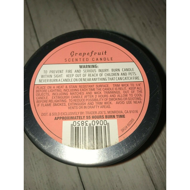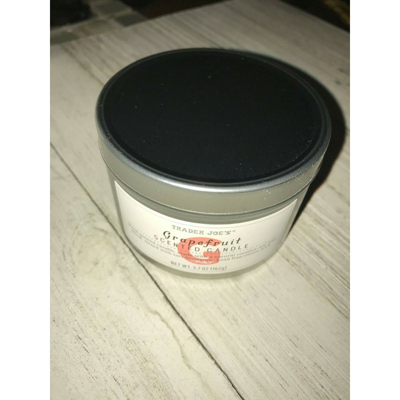 Trader Joes Grapefruit Scented Candle Tin 5.7 oz Soy Wax Citrus Scent