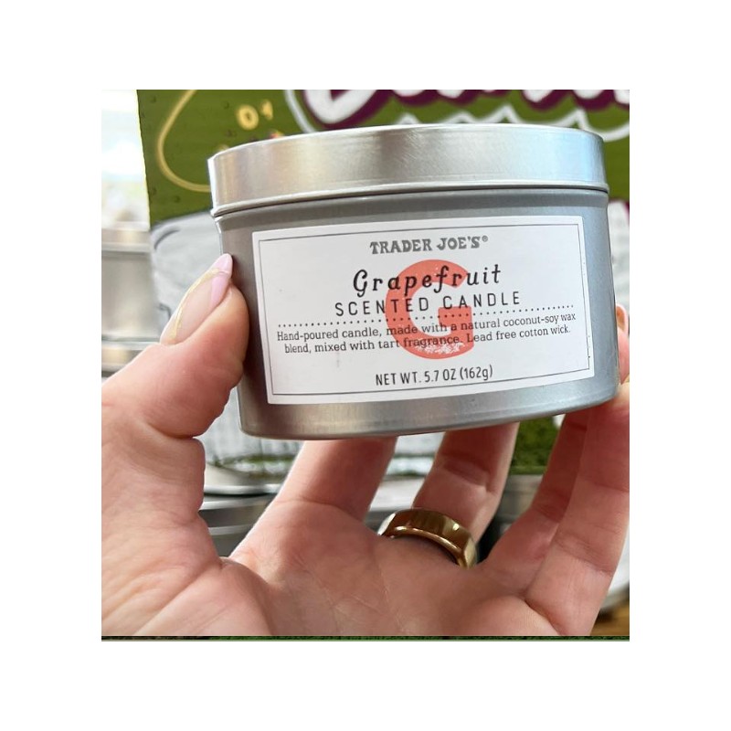 Trader Joe's Grapefruit Scented Candle comes in a convenient, lidded tin, which makes it a fabulous travel companion and/or a fantastic gift for any occasion-and if that gift just happens to be for yourself...well, you deserve it.