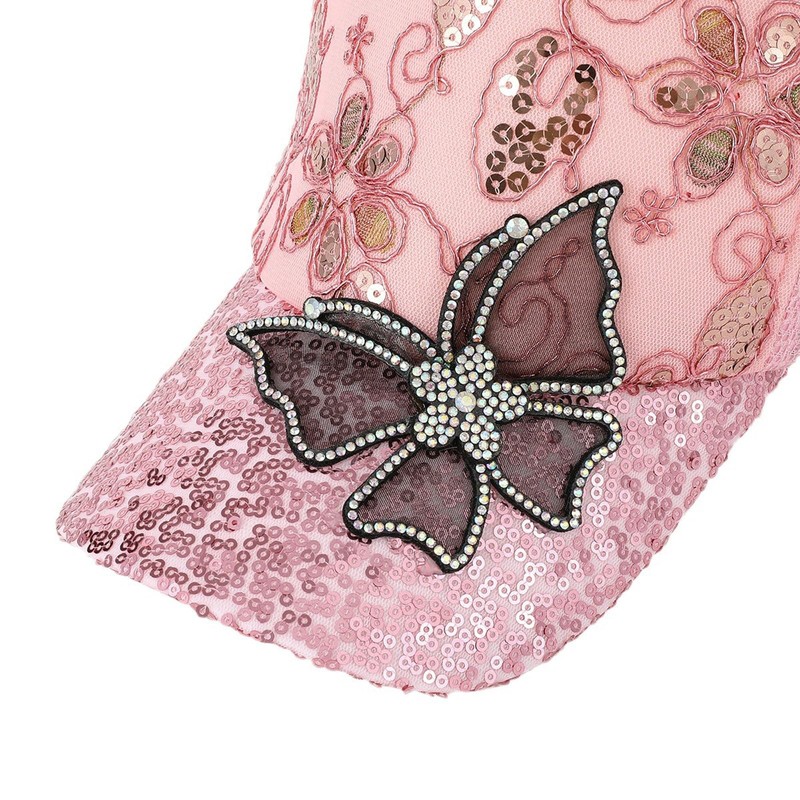 TRADERPLUS Sequin Baseball Cap Adjustable Rhinestone Butterfly Baseball Cap (AU, Alpha, Medium, Large, Pink)