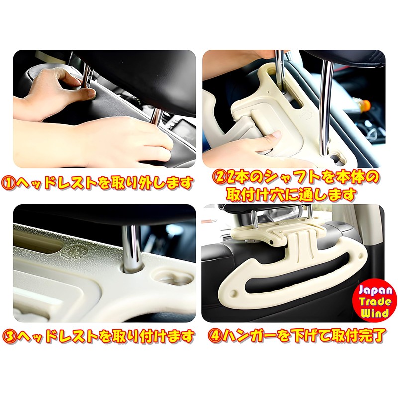 - Easy Installation: Remove the headrest and install the 2 shafts of the headrest through the mounting holes on the main unit, so it is easy for women to install. *If the headrest cannot be removed, such as electric headrests, it cannot be used