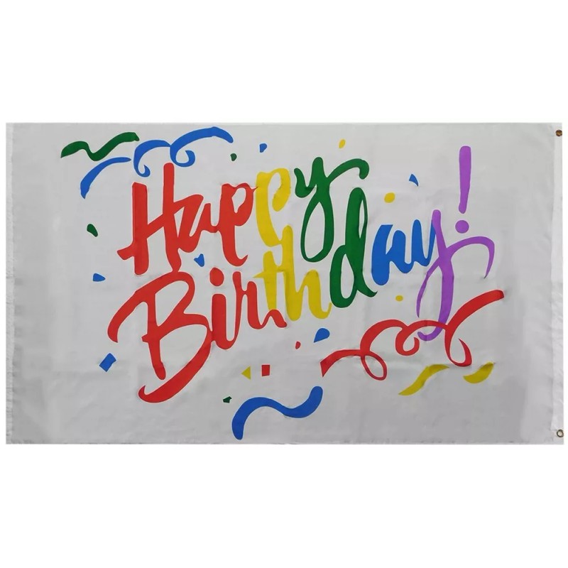 TRADEWINDS 3x5 Happy Birthday Colors White 100D 3'x5' Woven Poly Nylon Double Sided Flag