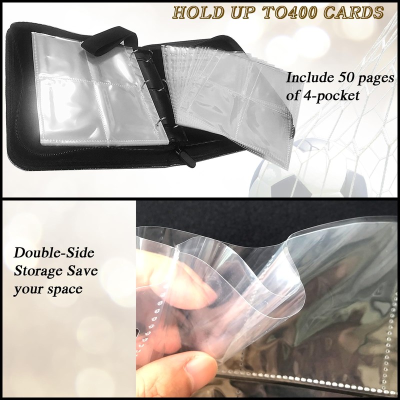 - 【Soccer Card Binder 4 Pocket】Each soccer card binder has 50 pages, each page has a double-sided card slot,holds up to 400 cards. hobby. Fits any standard, 3-hole pages or paper. It is refillable/expandable, It means that you can arbitrarily increase or reduce the number of internal Pages.