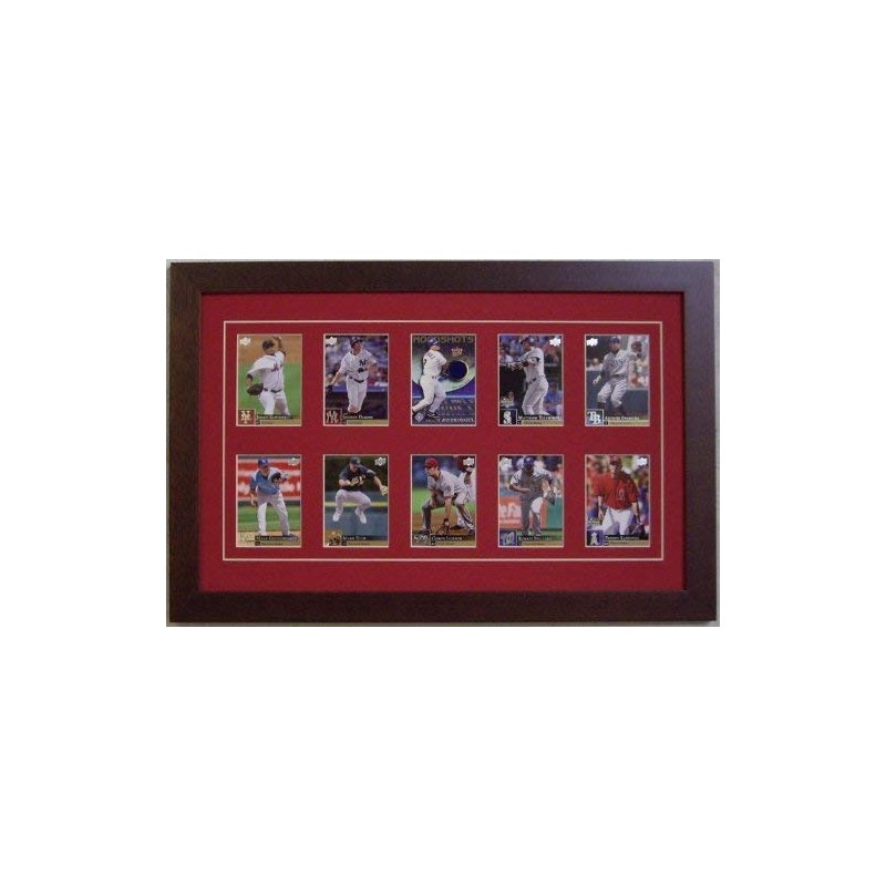 A professional frame set for a fraction of custom frame shop prices. Trading card display frame for mounting and displaying trading cards and atc's. Great for collectible and autographed baseball cards or any standard 2.5" x 3.5" cards. Decorative v-groove design around the card set. Back dust cover included or leave the backing off for viewing the card back. Our unique conservation safe mount process allows you to mount your cards.