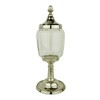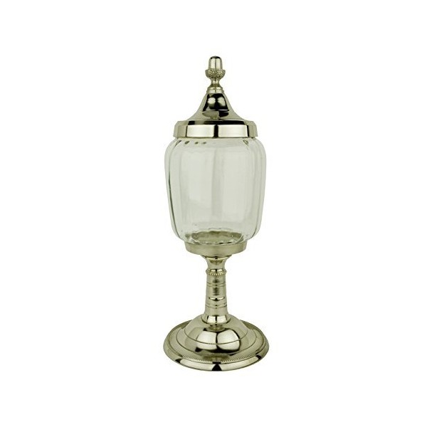 - ''' Stands 15.5 tall overall, with the base 6 in diameter.#||# The glass bowl is 5 tall and 5 in diameter.#||# Mouth-blown glass bowl.#||# Chrome plating over brass.#||# Imported.'''