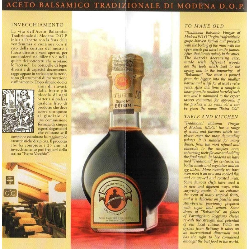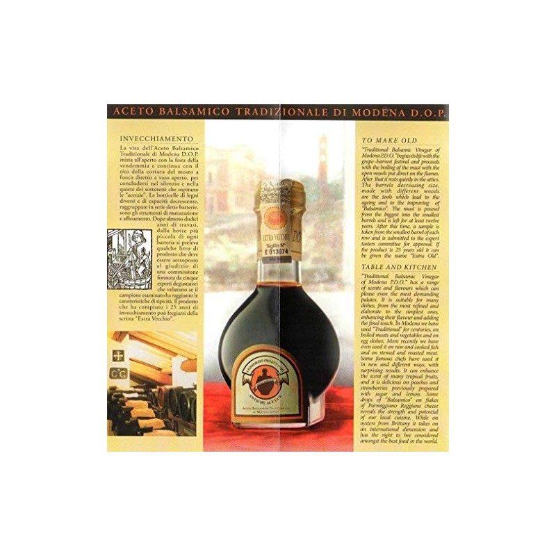 Traditional Balsamic Vinegar of Modena 25 years old, Pdo (Malpighi) 3.4 oz + Tic doser + Recipes book